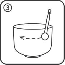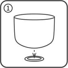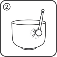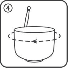 次に、杖またはマレットを使って「ボウルの周りの音をたどって」、音の長さと音量を高めます。
